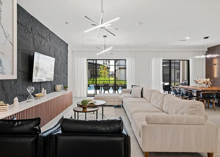 Deze 9-slaapkamer 10 Bedrooms9 Bathrooms Paradiso Grande 6170 Hs Orlando villa ligt op circa 7 km van het Volcano Bay waterpark en biedt toegang tot toeristische plekken in de omgeving.